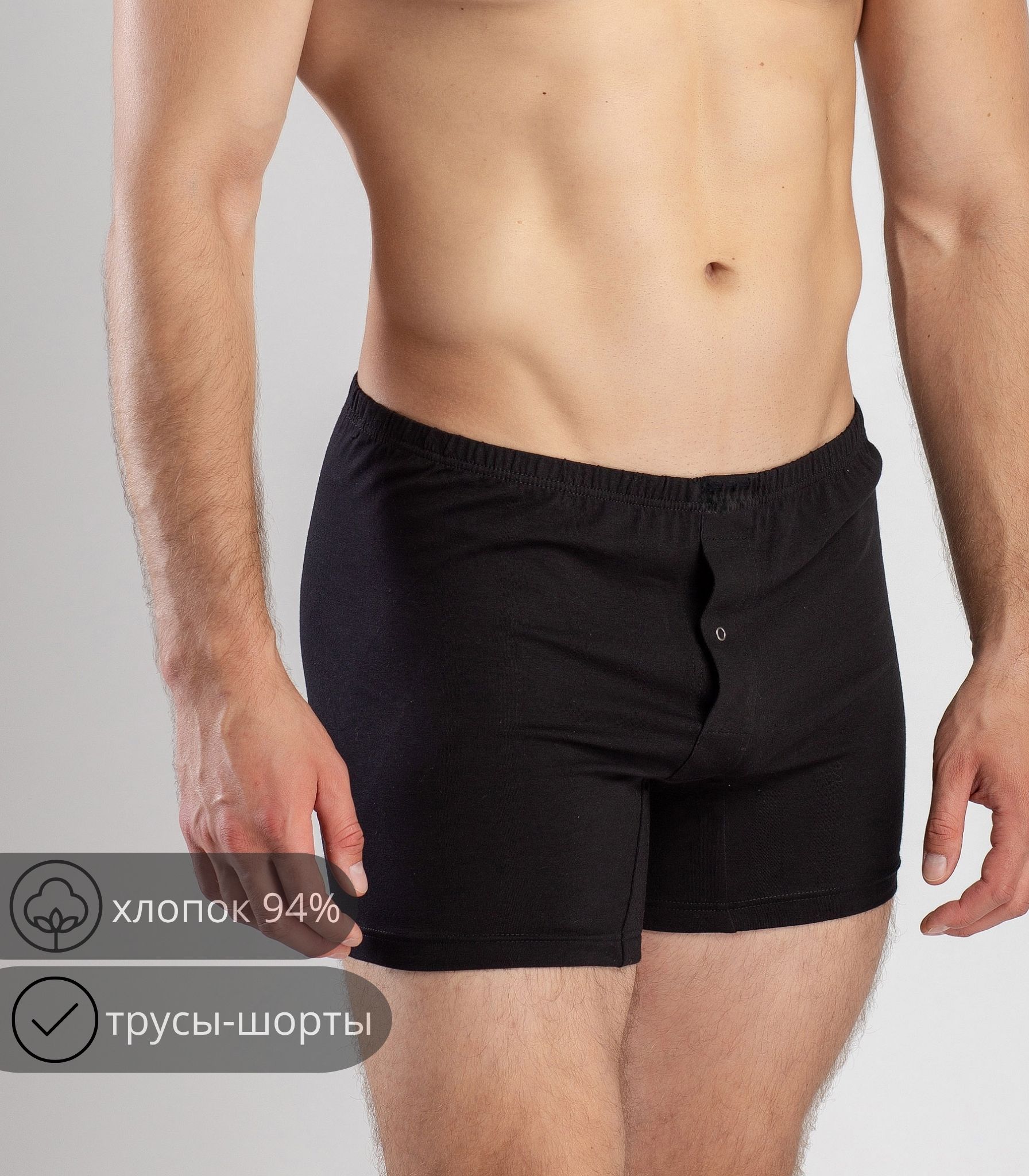 Мужские трусы-шорты выполнены из качественного хлопка. Модель на удобном эластичном поясе, который не сдавливает кожу и не ощущается на теле. Благодаря свободному крою трусы не сковывают движений и комфортны в течение дня.