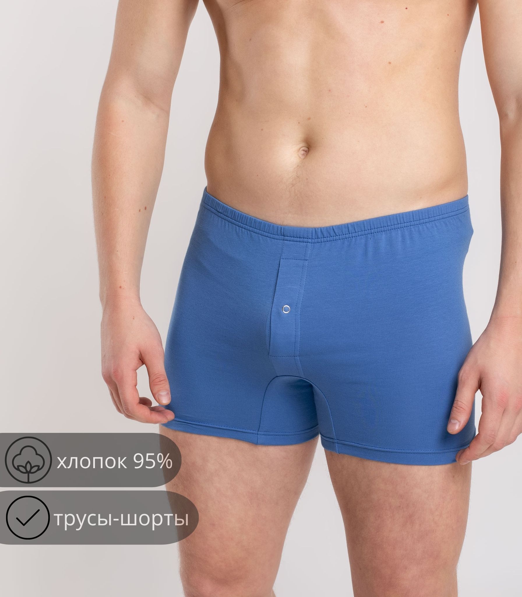 Мужские трусы-шорты выполнены из качественного хлопка. Модель на удобном эластичном поясе, который не сдавливает кожу и не ощущается на теле. Благодаря свободному крою трусы не сковывают движений и комфортны в течение дня.;