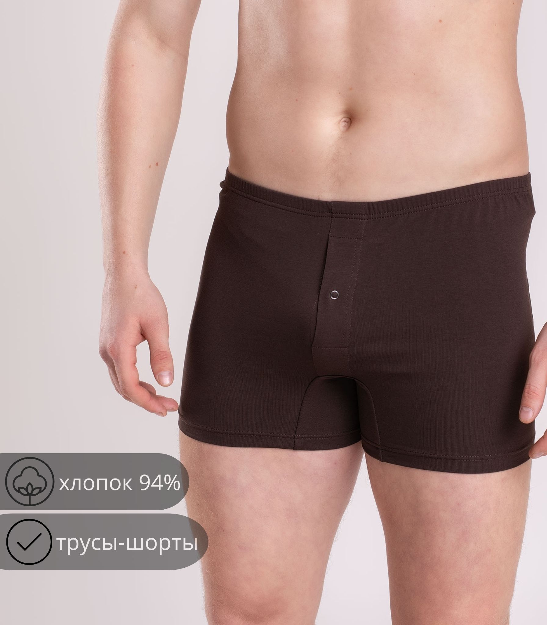 Мужские трусы-шорты выполнены из качественного хлопка. Модель на удобном эластичном поясе, который не сдавливает кожу и не ощущается на теле. Благодаря свободному крою трусы не сковывают движений и комфортны в течение дня.;
