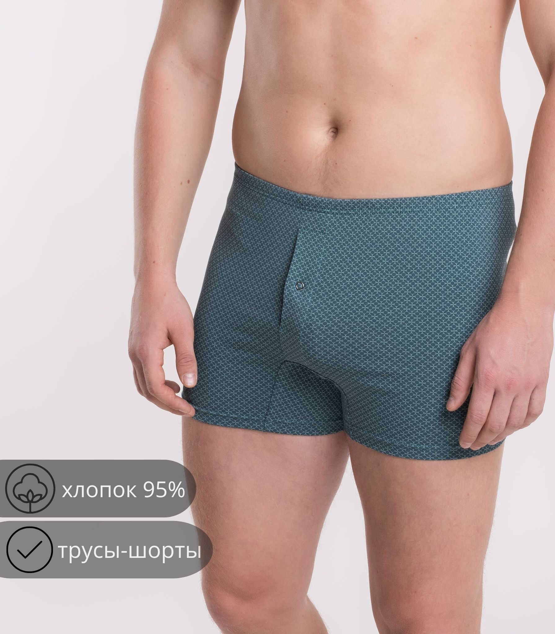 Мужские трусы-шорты выполнены из качественного хлопка. Модель на удобном эластичном поясе, который не сдавливает кожу и не ощущается на теле. Благодаря свободному крою трусы не сковывают движений и комфортны в течение дня.;