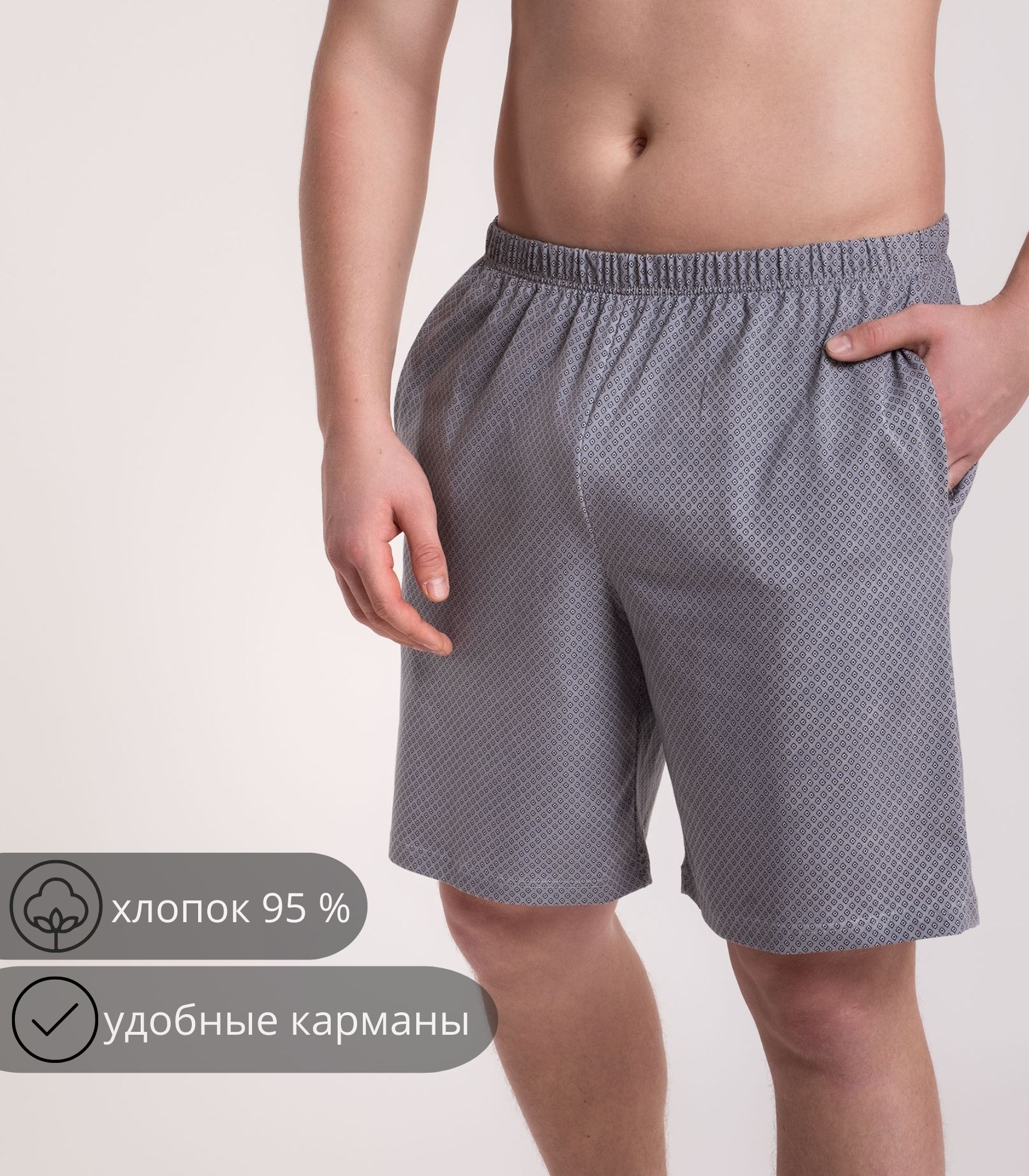 Мужские хлопковые шорты свободного силуэта. Средняя посадка на резинке подходит мужчинам любого телосложения, свободный крой оверсайз не стесняет движения и комфортно сидит по фигуре.;