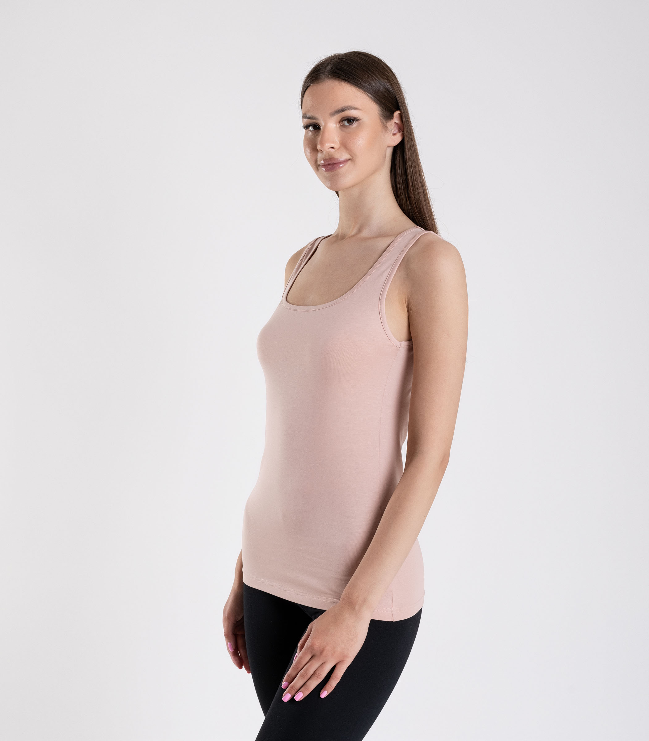 Приталеная и очень привлекательная маечка на широкой бретельке. Она отлично дополнит твой спортивный или домашний образ.