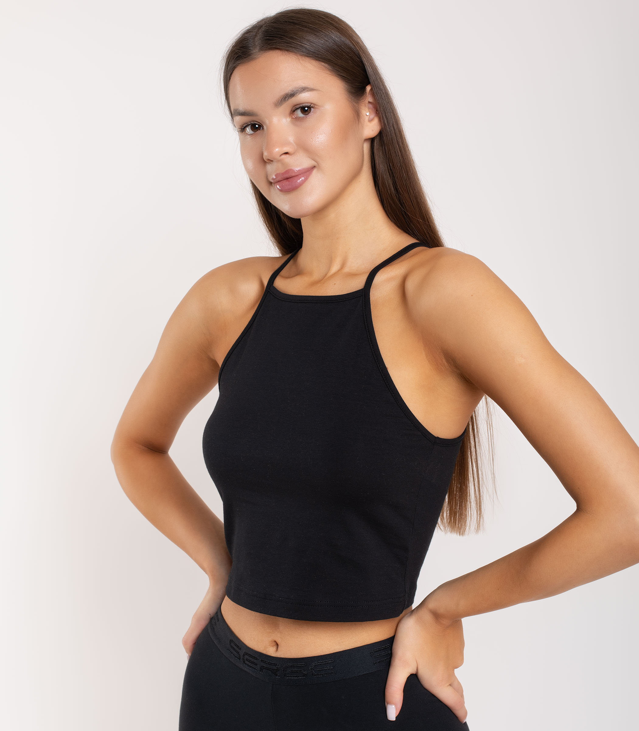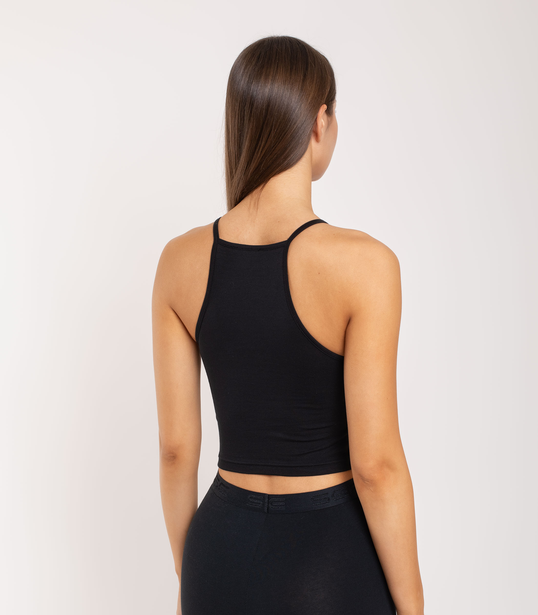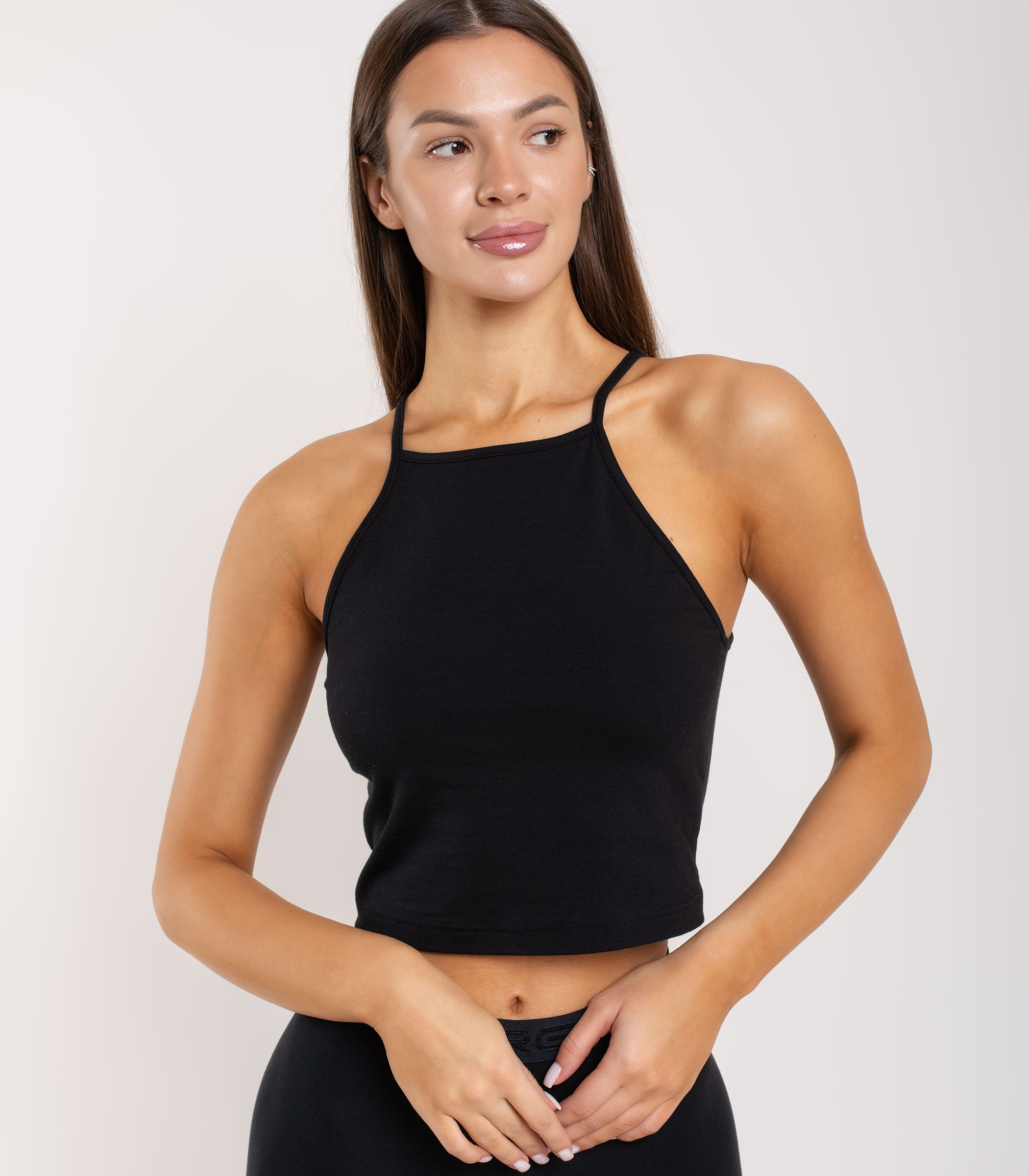 Базовый укороченный топ выполнен из высококачественного хлопка. Модель на тонких бретелях. Топ отлично подходит для повседневной носки и хорошо сочетается со многими элементами базового гардероба.