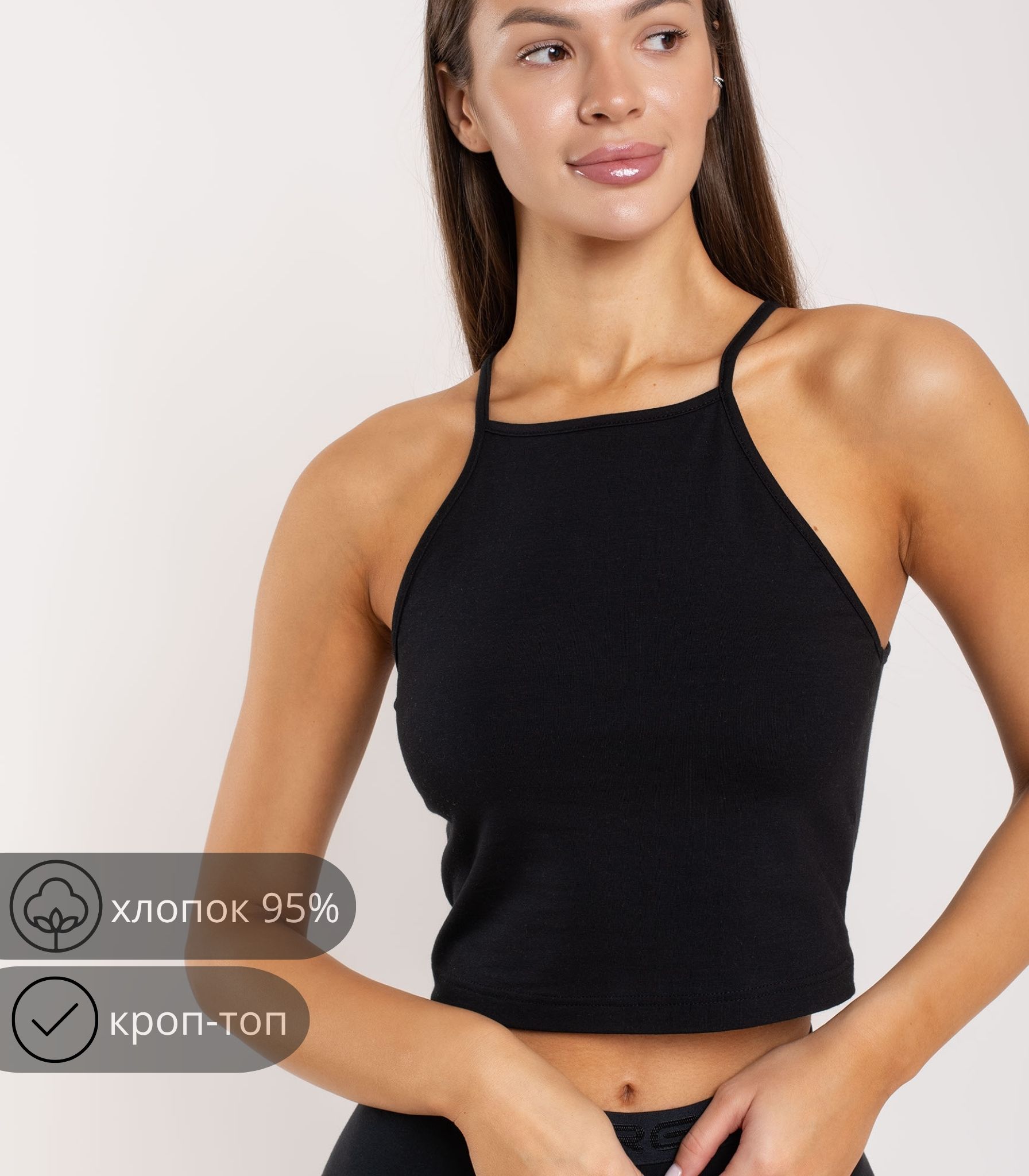 Базовый укороченный топ выполнен из высококачественного хлопка. Модель на тонких бретелях. Топ отлично подходит для повседневной носки и хорошо сочетается со многими элементами базового гардероба.;