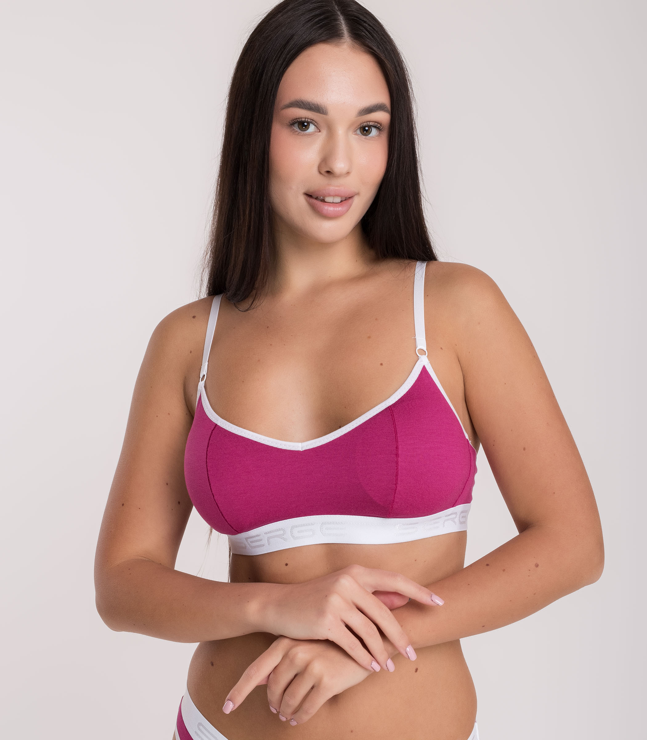 Базовое бюстье из мягкой вискозы. Модель на тонких регулируемых бретелях обеспечивает максимальный комфорт и поддержку груди. Бюстье с чашками подходит для занятий спортом, повседневной носки, отдыха и фитнеса.