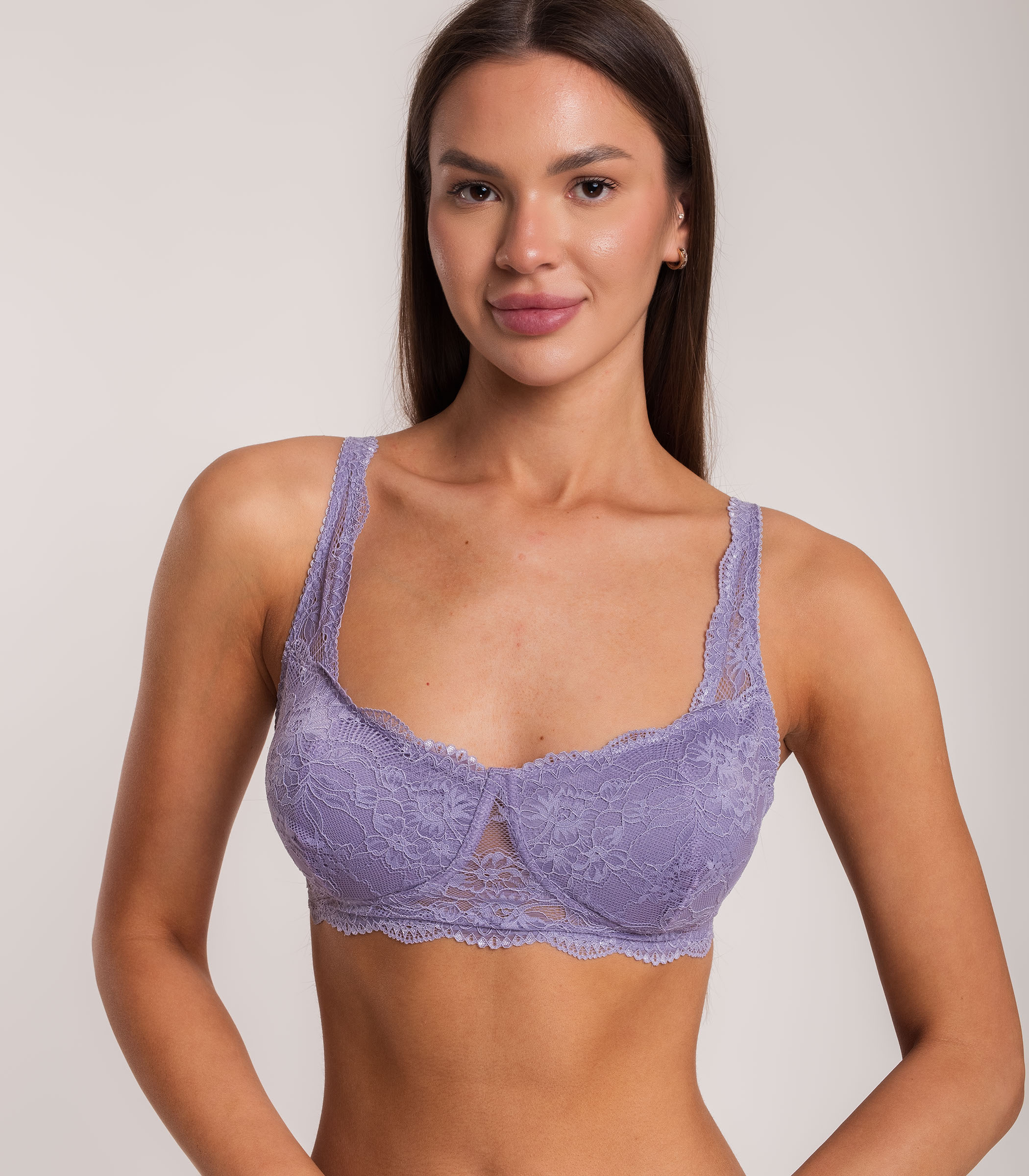 Базовое бюстье из вискозы с нежным кружевом. Модель на тонких бретелях с застежкой обеспечивает максимальный комфорт и поддержку груди. Бюстье подходит для повседневной носки, отдыха и фитнеса.