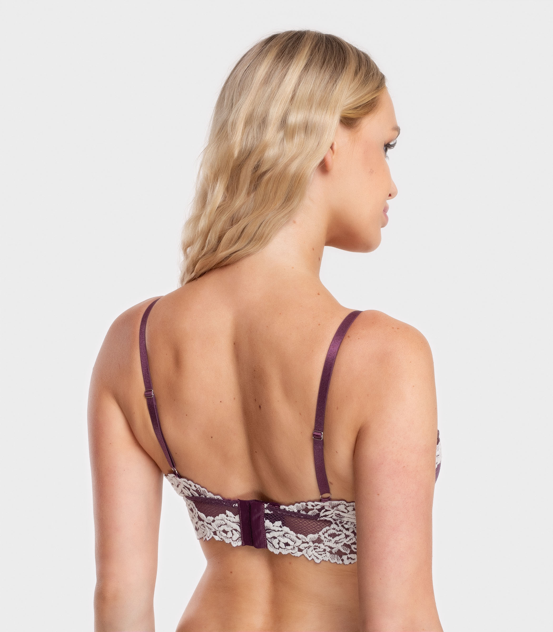 Бюстье с чашками выполнено из эластичного кружева. По низу модель с ажурным кружевным поясом. Бюстье без косточек на застежке с тонкими бретелями на регуляции, которые позволяют регулировать посадку по фигуре.