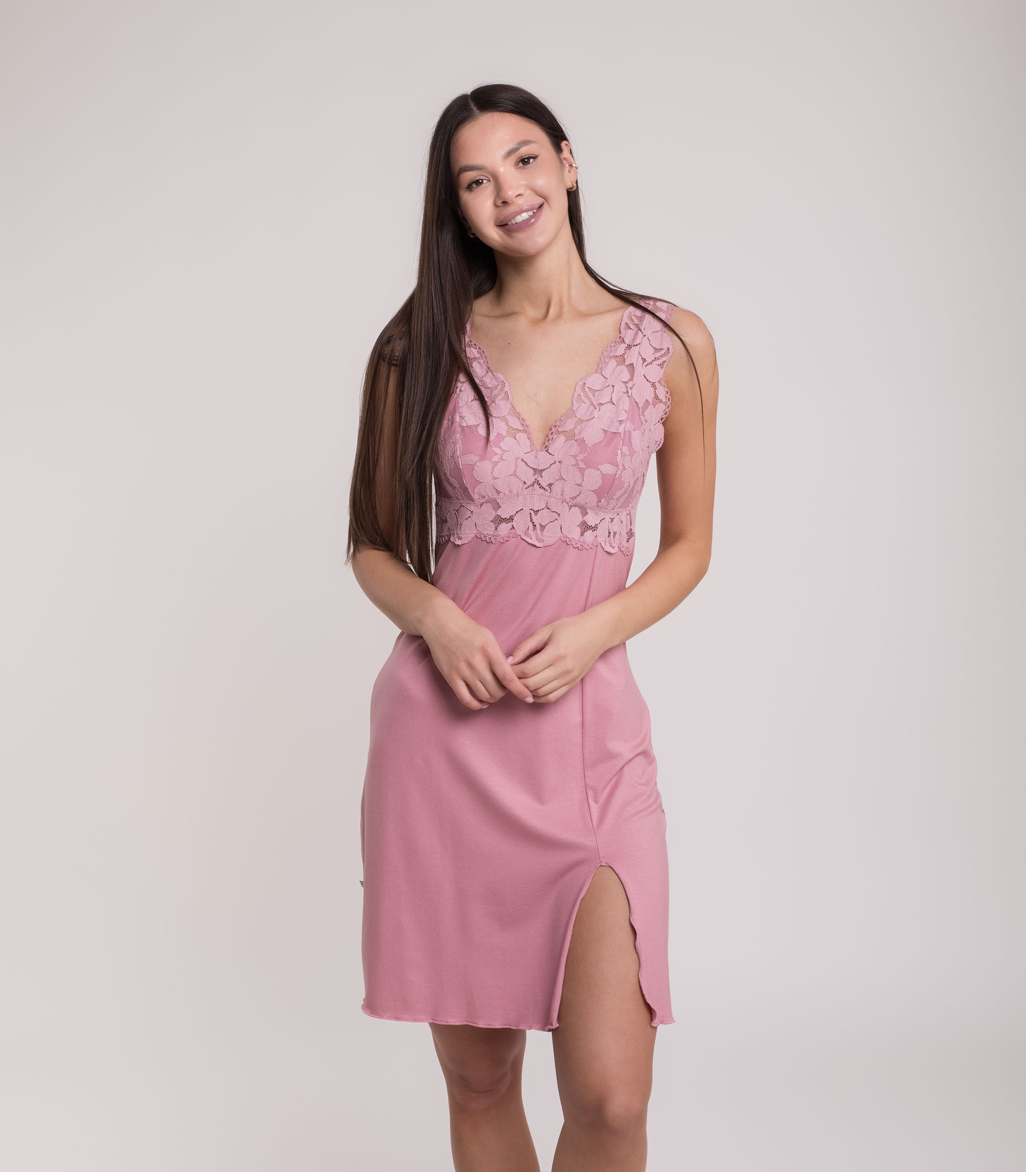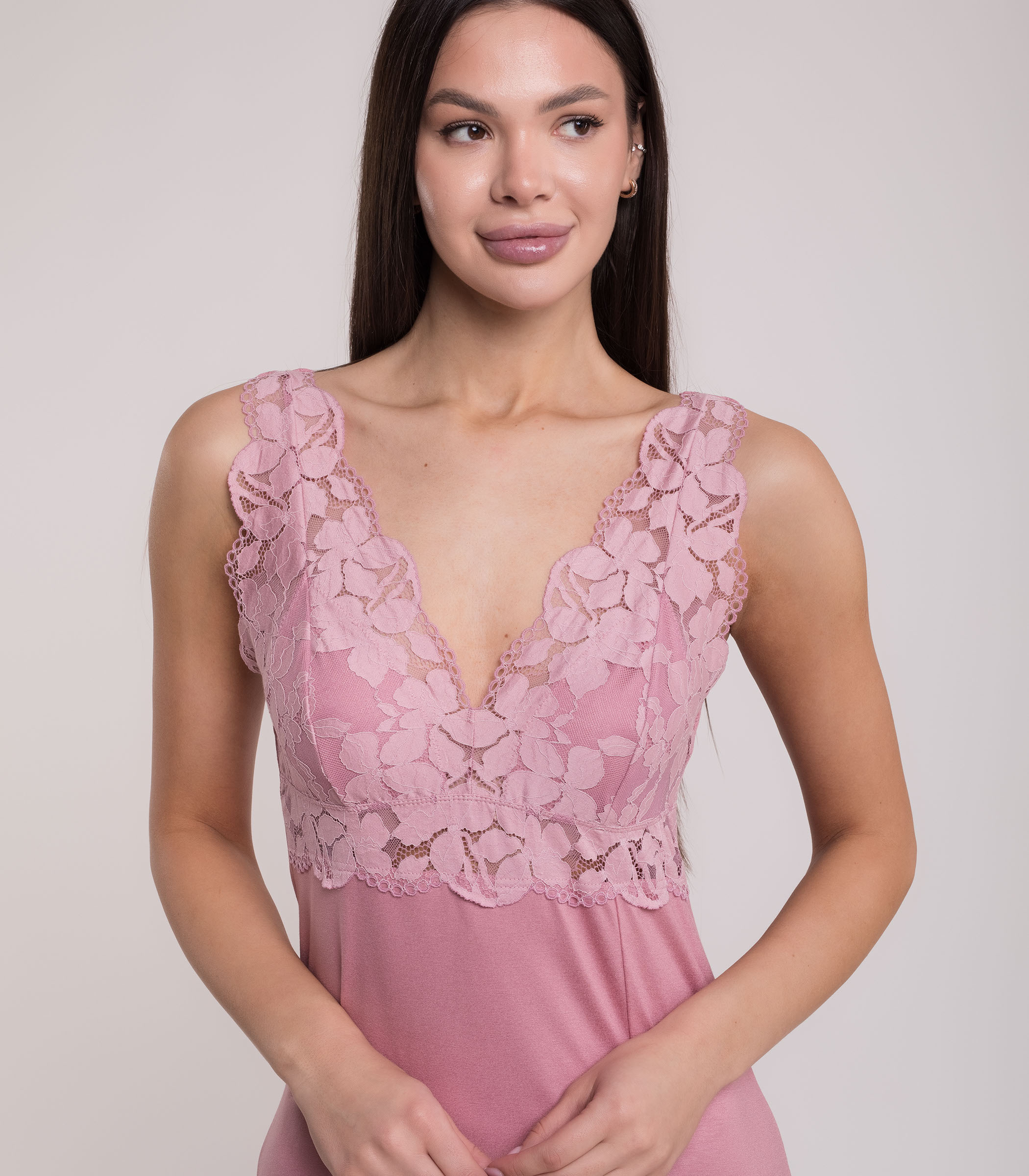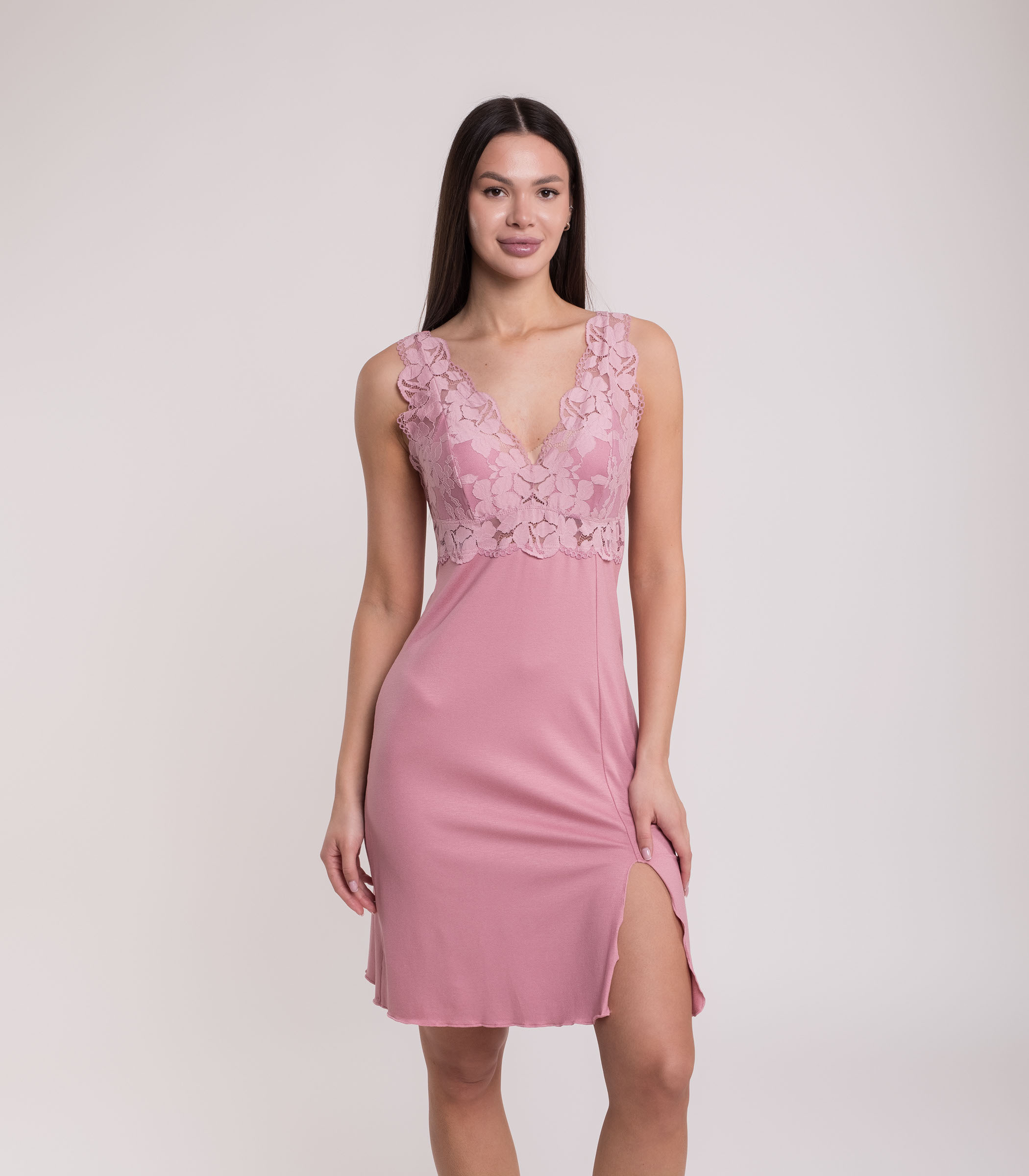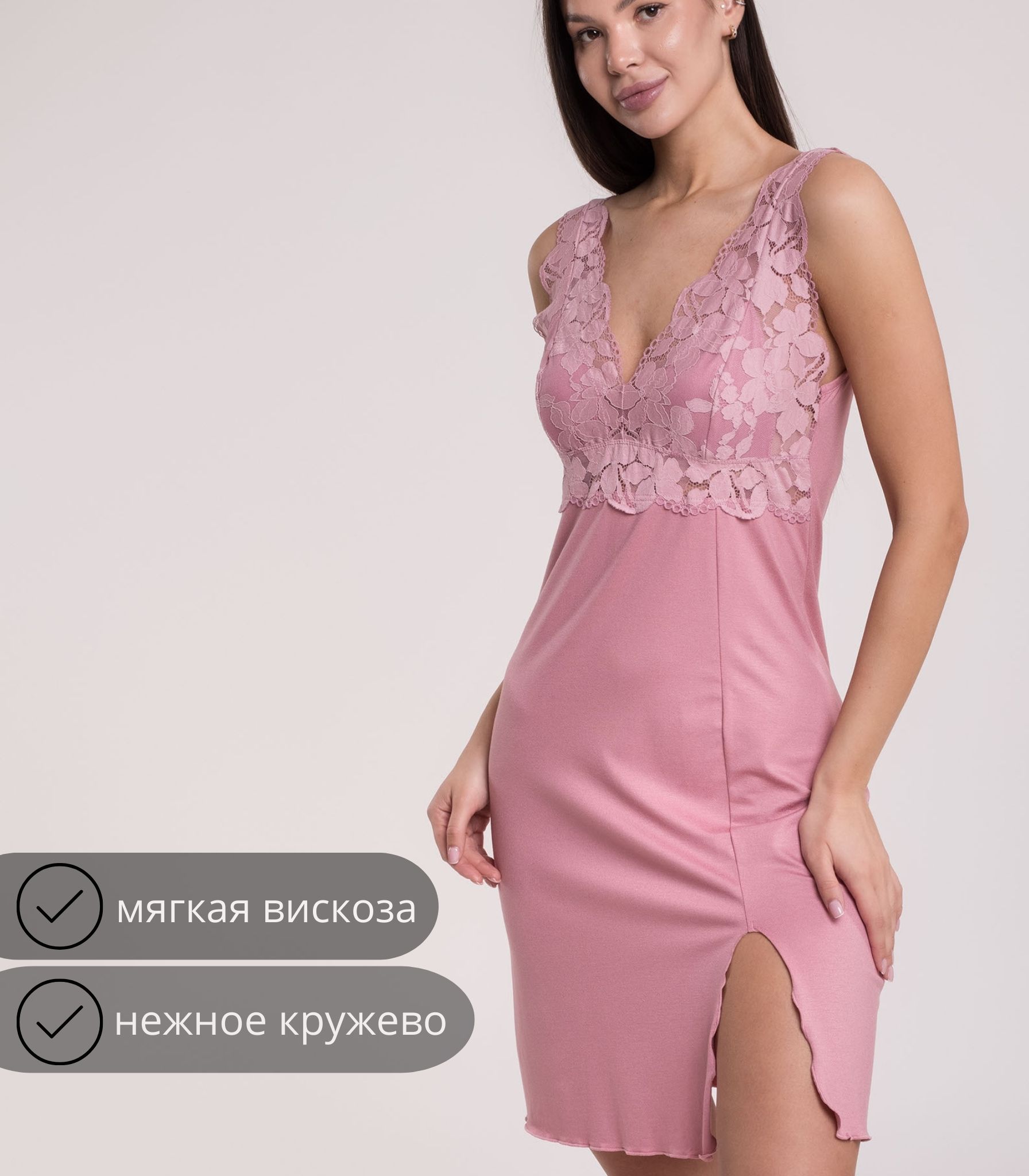 Элегантная сорочка выполнена из мягкой вискозы. Модель приталенного силуэта. Зона декольте отделана ажурным кружевом. Сорочка обеспечивает комфорт во время сна и домашнего отдыха.;