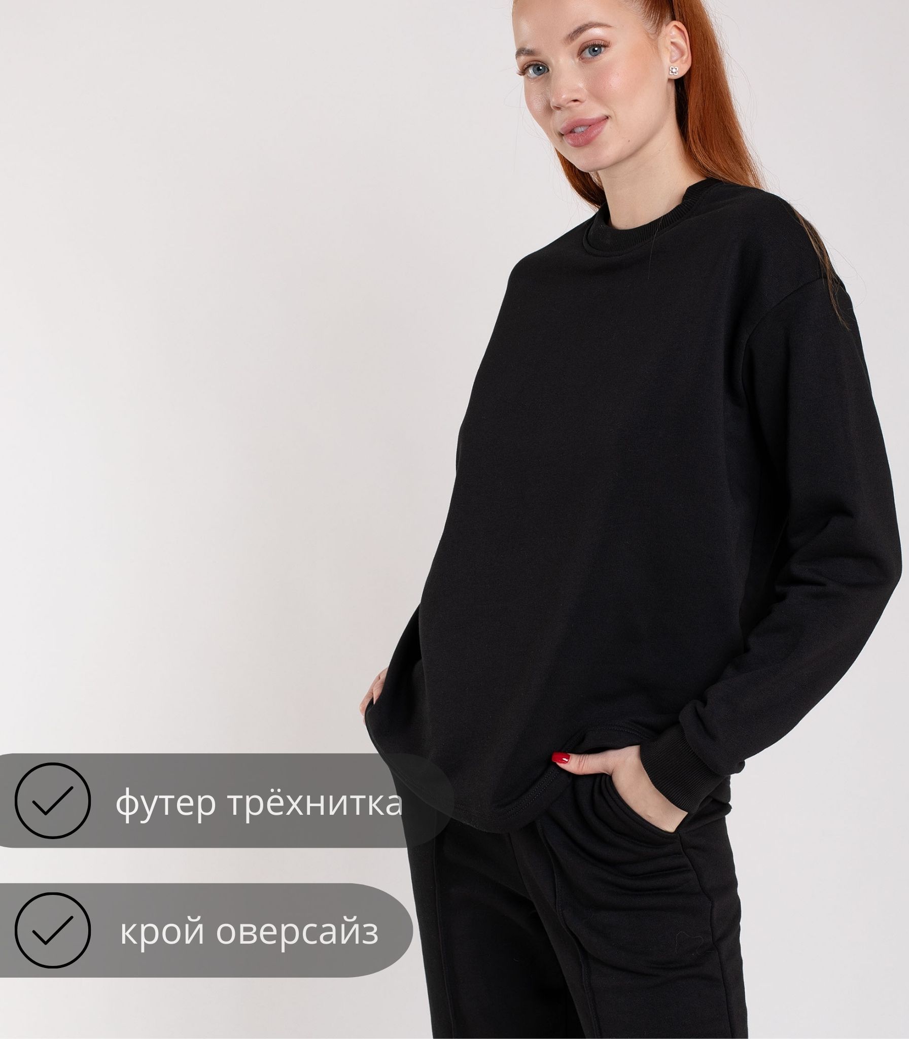 Женский оверсайз джемпер выполнен из футера трехнитки. Модель с круглой горловиной и длинными рукавами на манжетах. Джемпер отлично вписывается в базовый гардероб и хорошо сочетается как со спортивным, так и с повседневным стилем.;