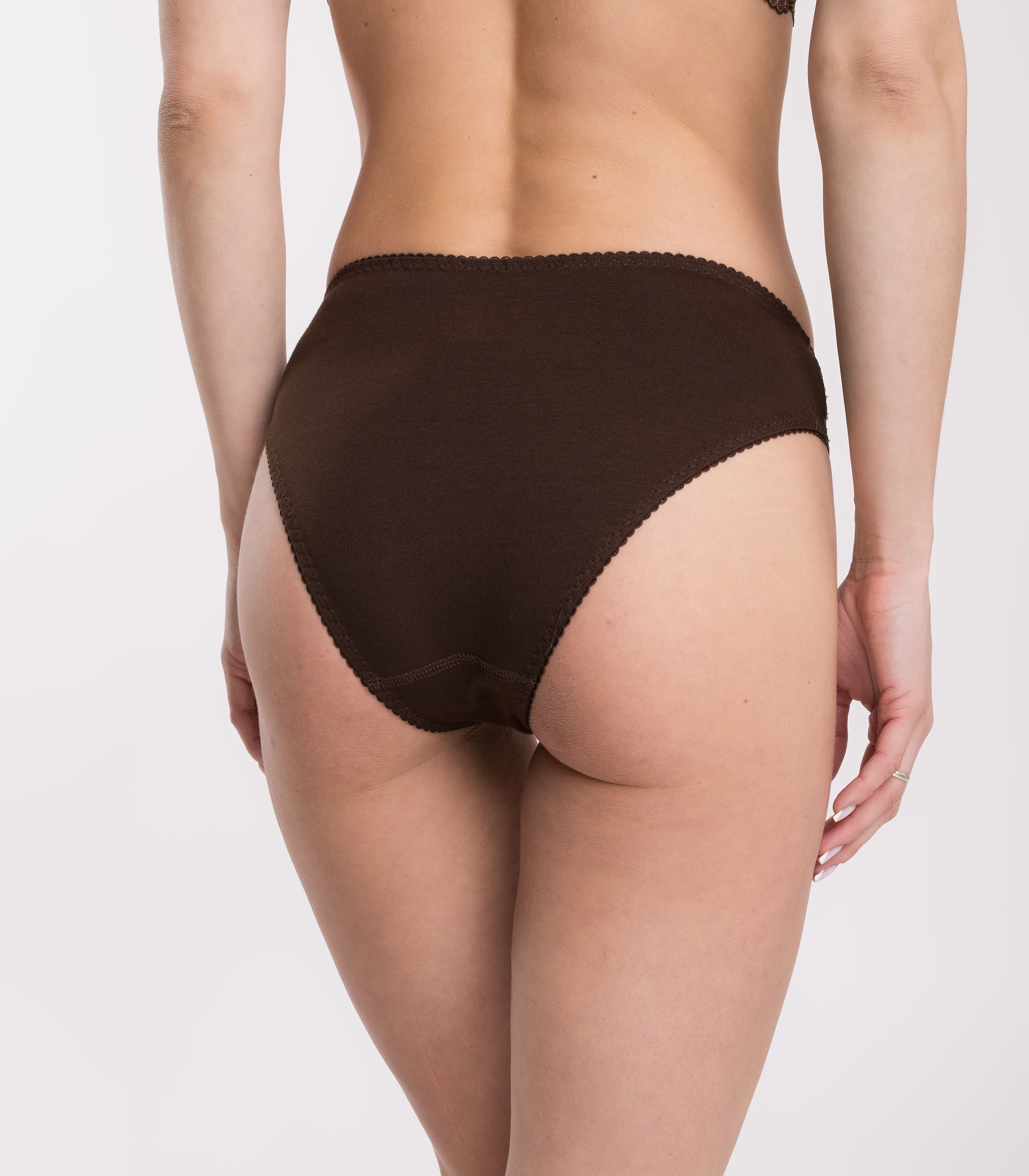 Трусики-слипы на средней посадке выполнены из мягкого хлопка. Передняя деталь с эффектной кружевной вставкой по диагонали. Модель с V-образной линией талии. Трусы комфортно сидят по фигуре и не сковывают движения.