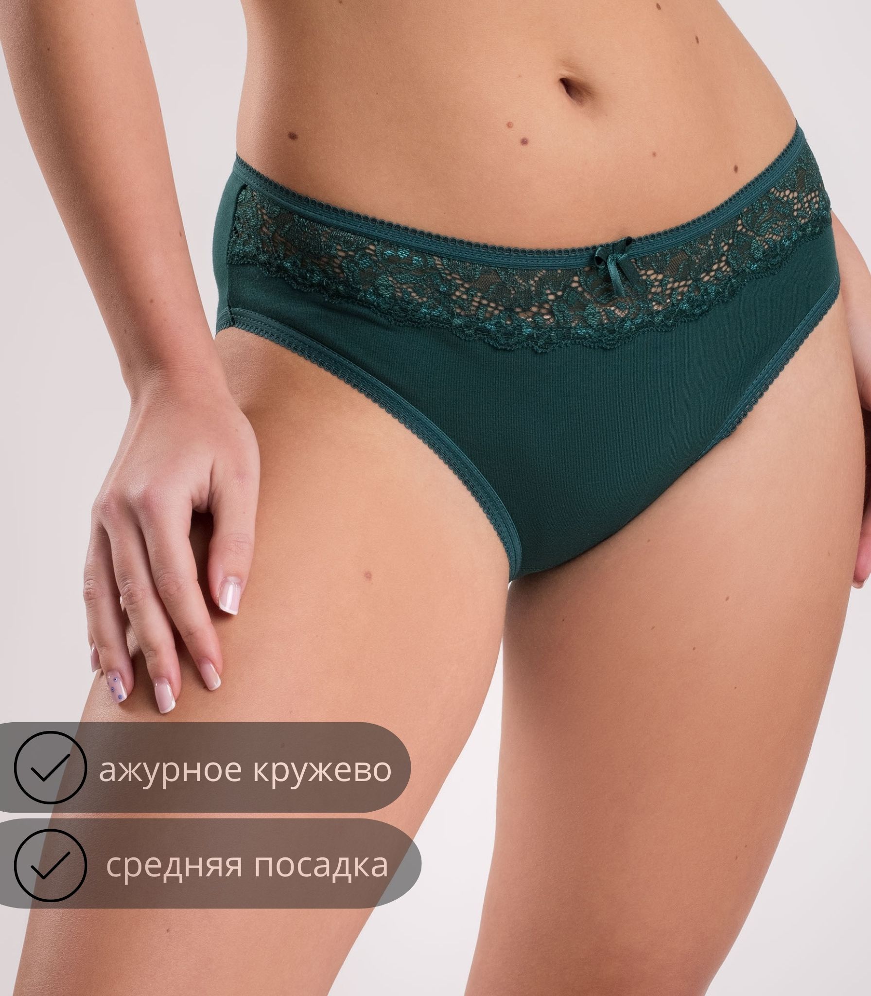 Практичные трусики на классической посадке выполнены из мягкого хлопкового полотна. Модель дополнена мягким ажурным кружевом. Трусы идеально подойдут для повседневного использования и не будут видны под одеждой.;