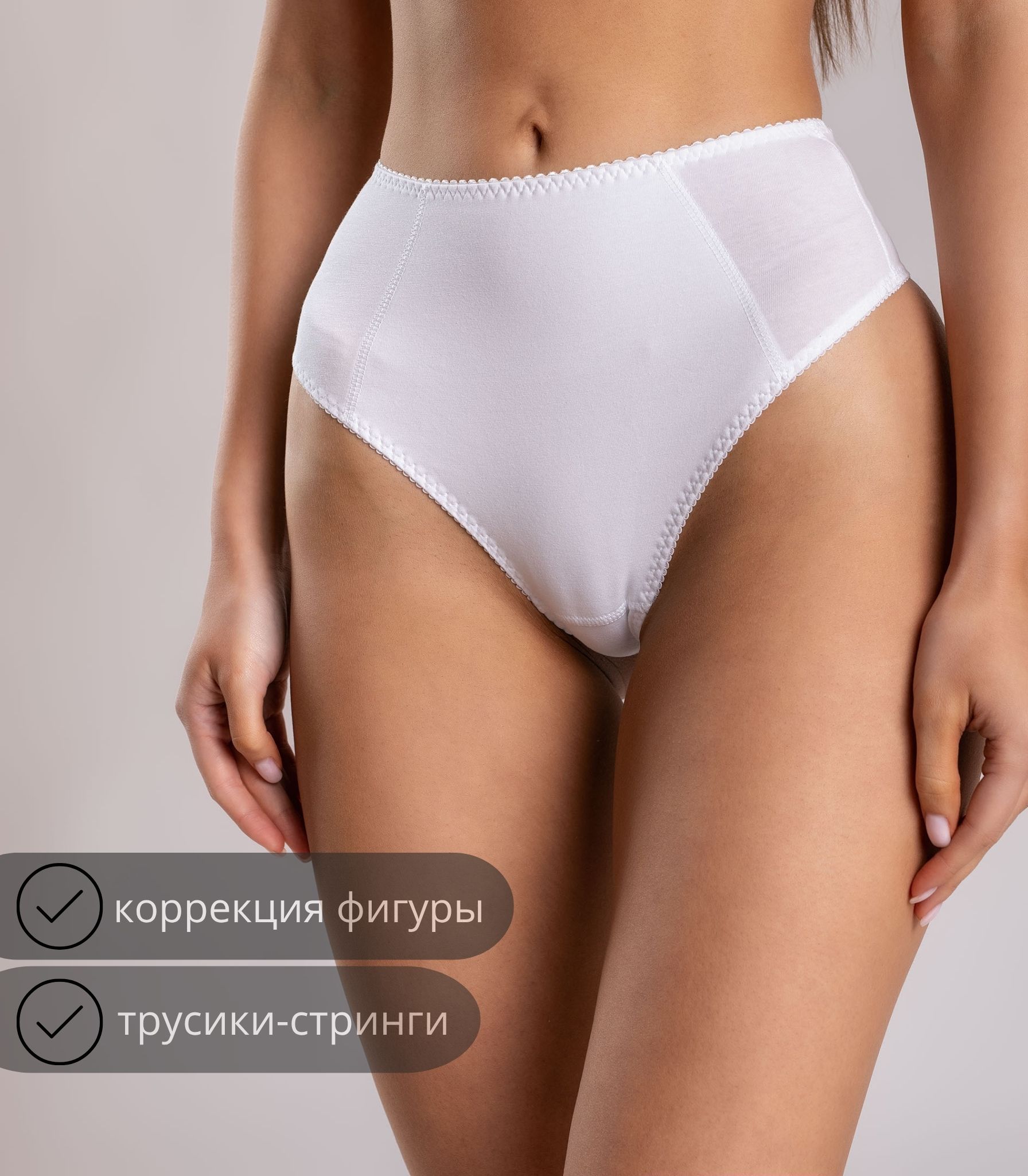 Комфортные женские трусики-стринги выполнены из мягкого хлопкового полотна. Модель на высокой посадке отлично сидит по фигуре и округляет ягодицы. На передней детали вертикальные строчки.;