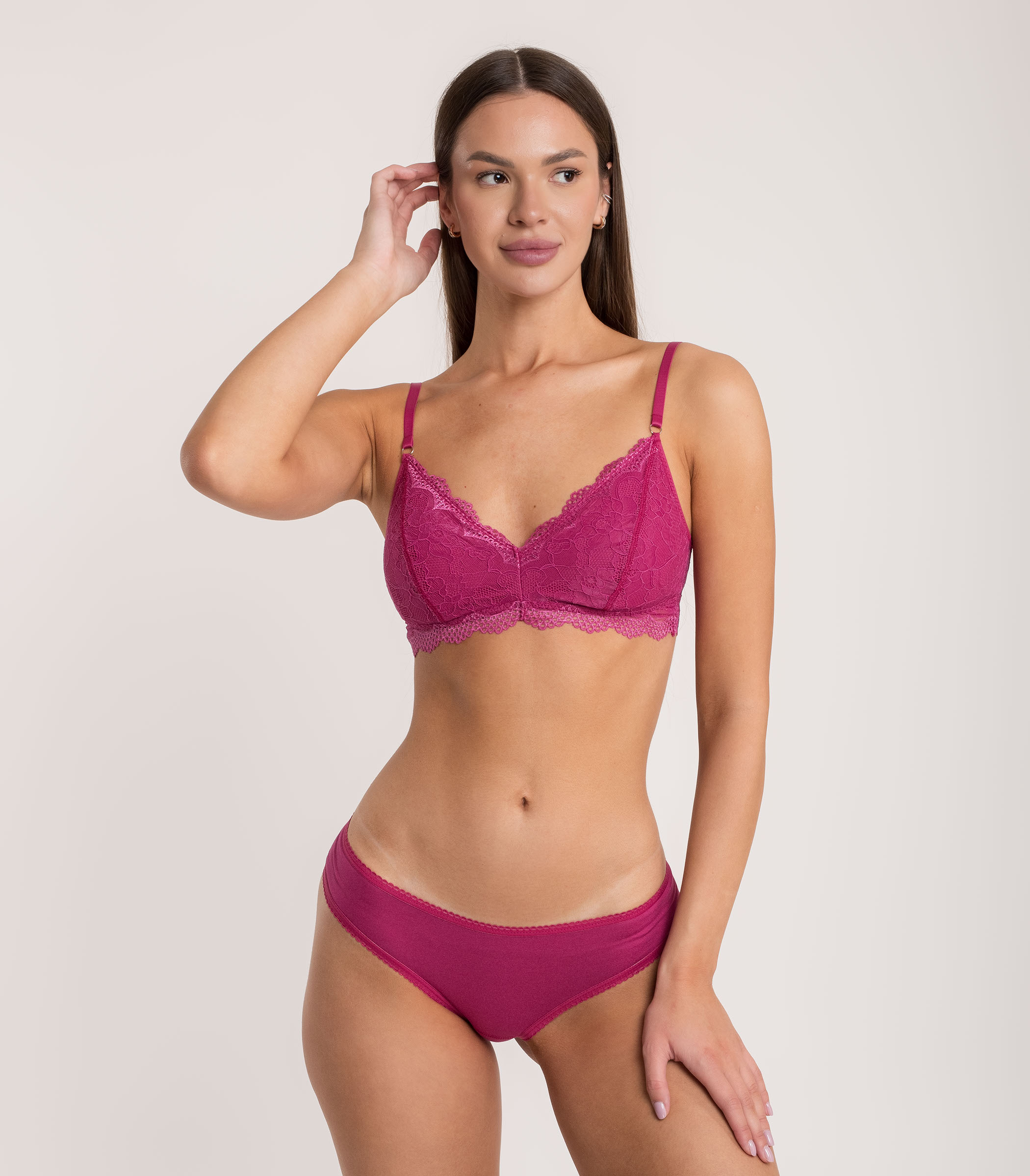 Трусики на низкой посадке выполнены из мягкой вискозы и кружева. Модель имеет безупречную посадку и не сковывает движения. Трусы не заметны под одеждой благодаря кружевной задней детали, огибающей ягодицы.