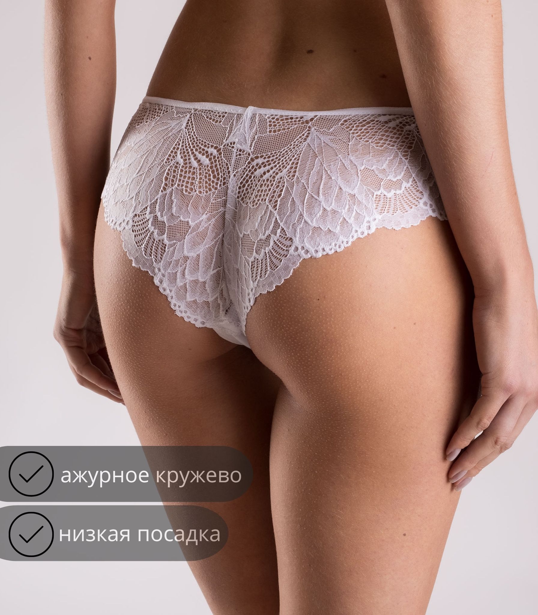 Классические трусики с кружевной задней деталью. Модель на средней посадке отлично сидит на фигуре и подчеркивает ягодицы. Трусы мягкие на ощупь, плотно прилегают к телу и практически не заметны под одеждой.