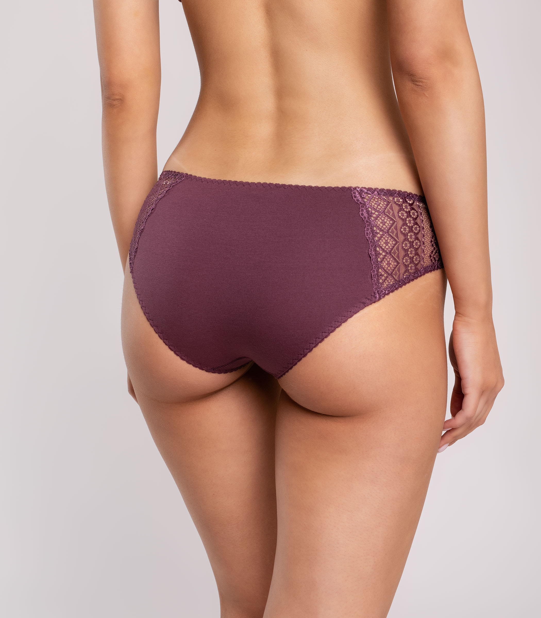 Базовые трусики на низкой посадке выполнены из мягкого хлопкового полотна. Модель декорирована кружевными вставками по бокам. Посадка и мягкие швы обеспечивают комфорт и удобство в использовании.