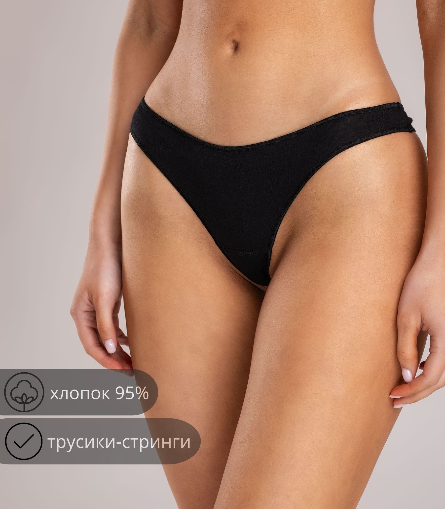 Базовые трусики-стринги выполнены из мягкого хлопкового полотна с добавлением эластана. Модель на заниженной посадке. Трусы минималистичные, комфортно прилегают к телу и незаметны под одеждой.;