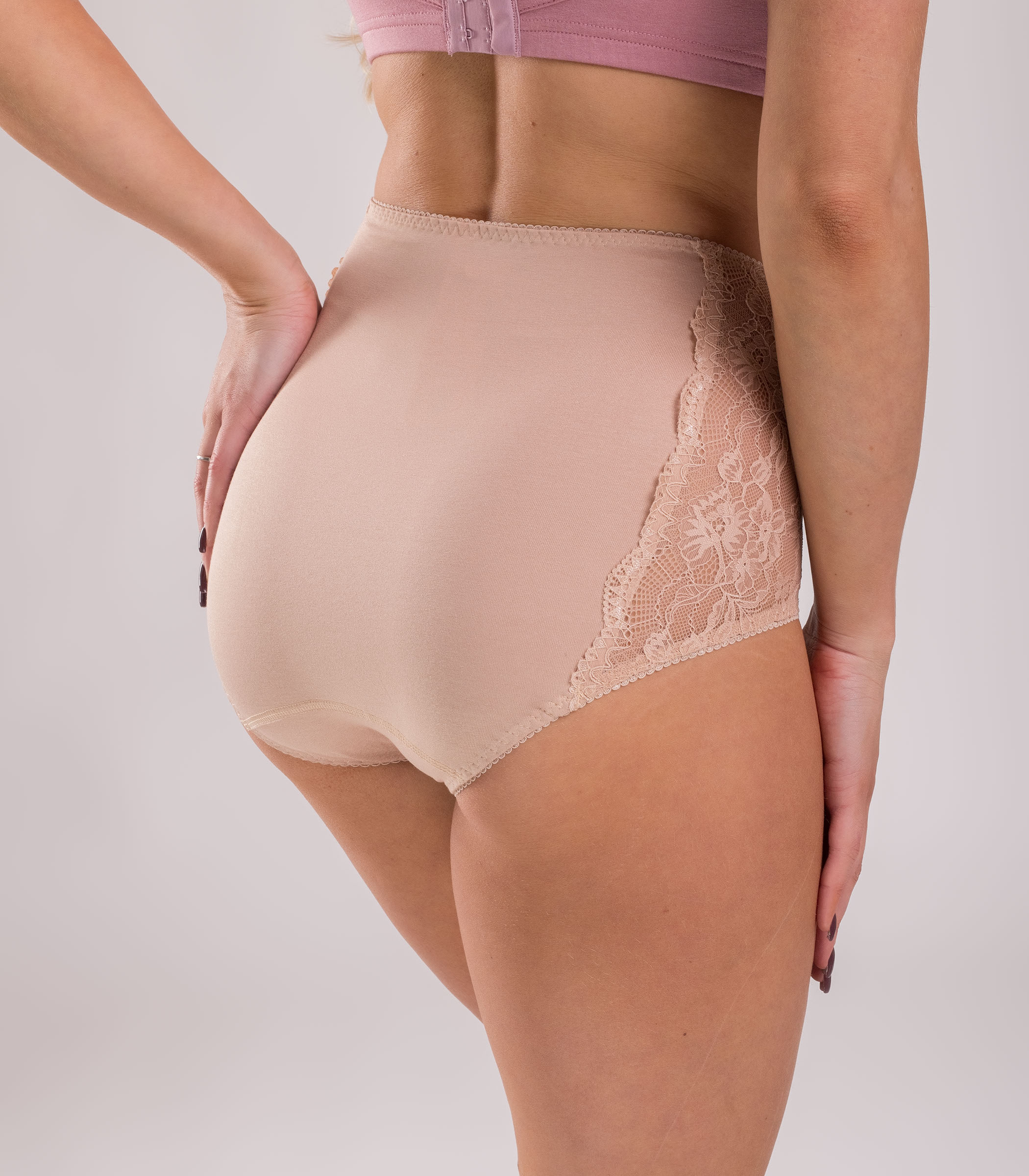 Классическая модель трусов-слипов на завышенной посадке из вискозы. По бокам кружевные вставки. Трусы плотно прилегают к телу и полностью закрывают ягодицы.