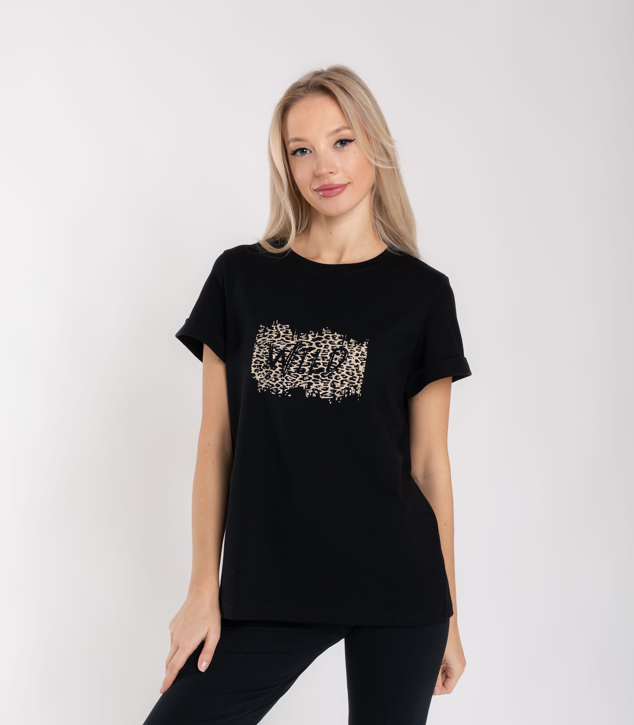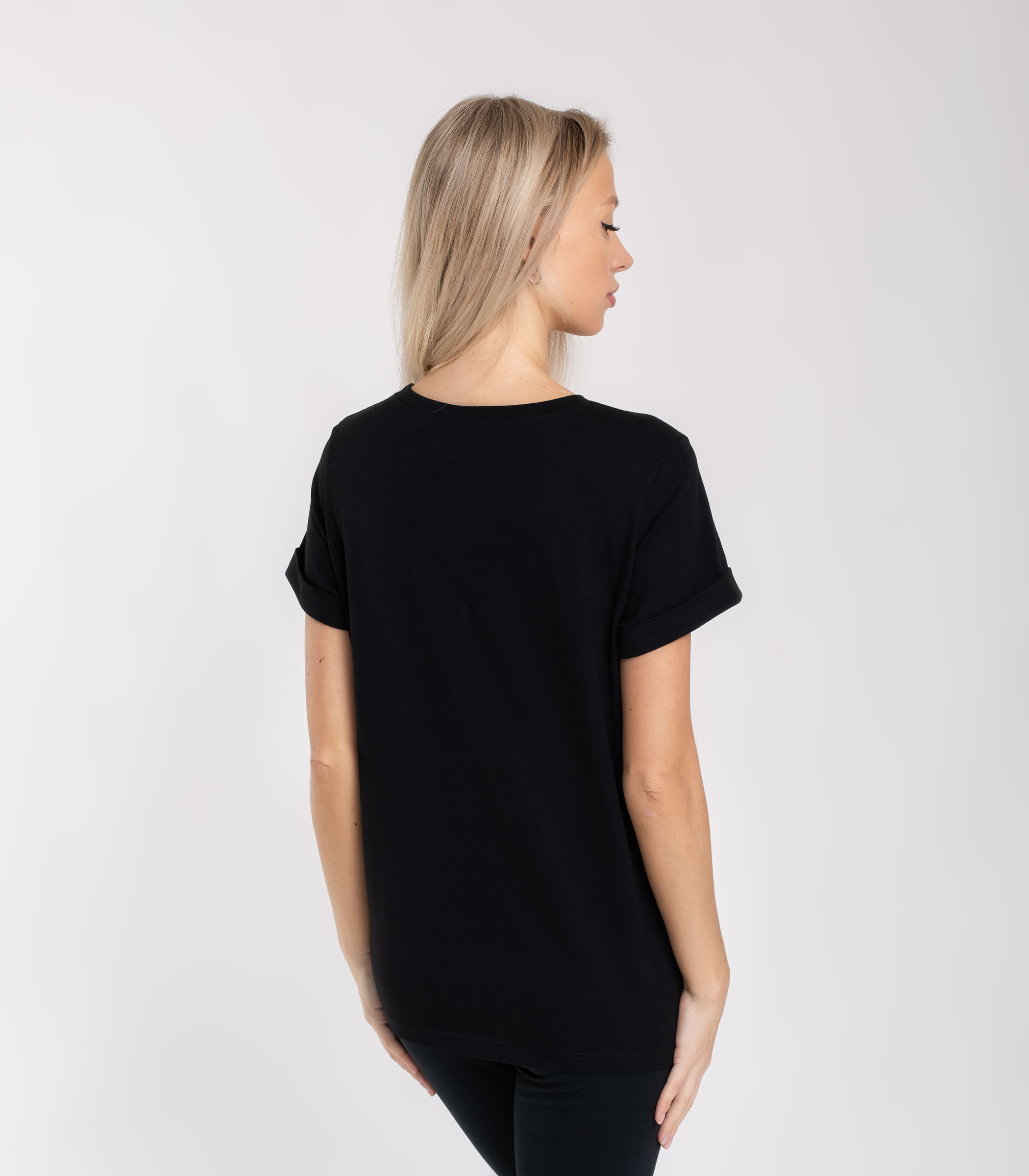Базовая футболка с подворотами на рукавах выполнена из мягкого хлопкового полотна. Она приятна к телу и обеспечивает комфорт в носке. Модель свободного силуэта, укороченная хорошо сидит на разных типах фигуры и отлично сочетается с любой вещью в вашем гардеробе.