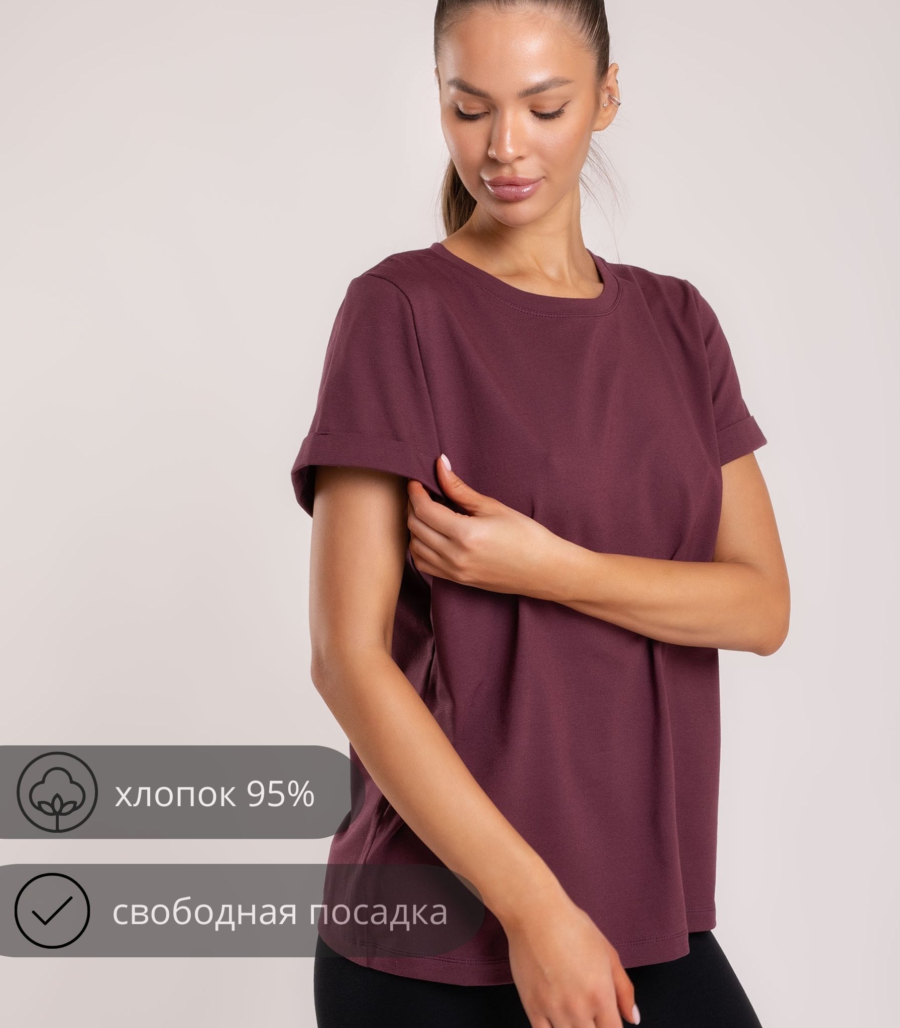 Базовая футболка с подворотами на рукавах выполнена из мягкого хлопкового полотна. Она приятна к телу и обеспечивает комфорт в носке. Модель свободного силуэта, укороченная хорошо сидит на разных типах фигуры и отлично сочетается с любой вещью в вашем гардеробе.;