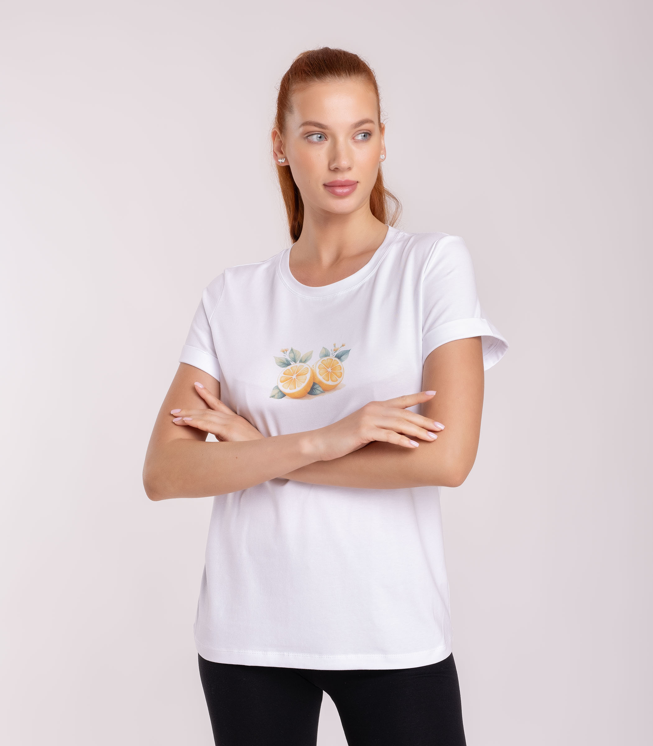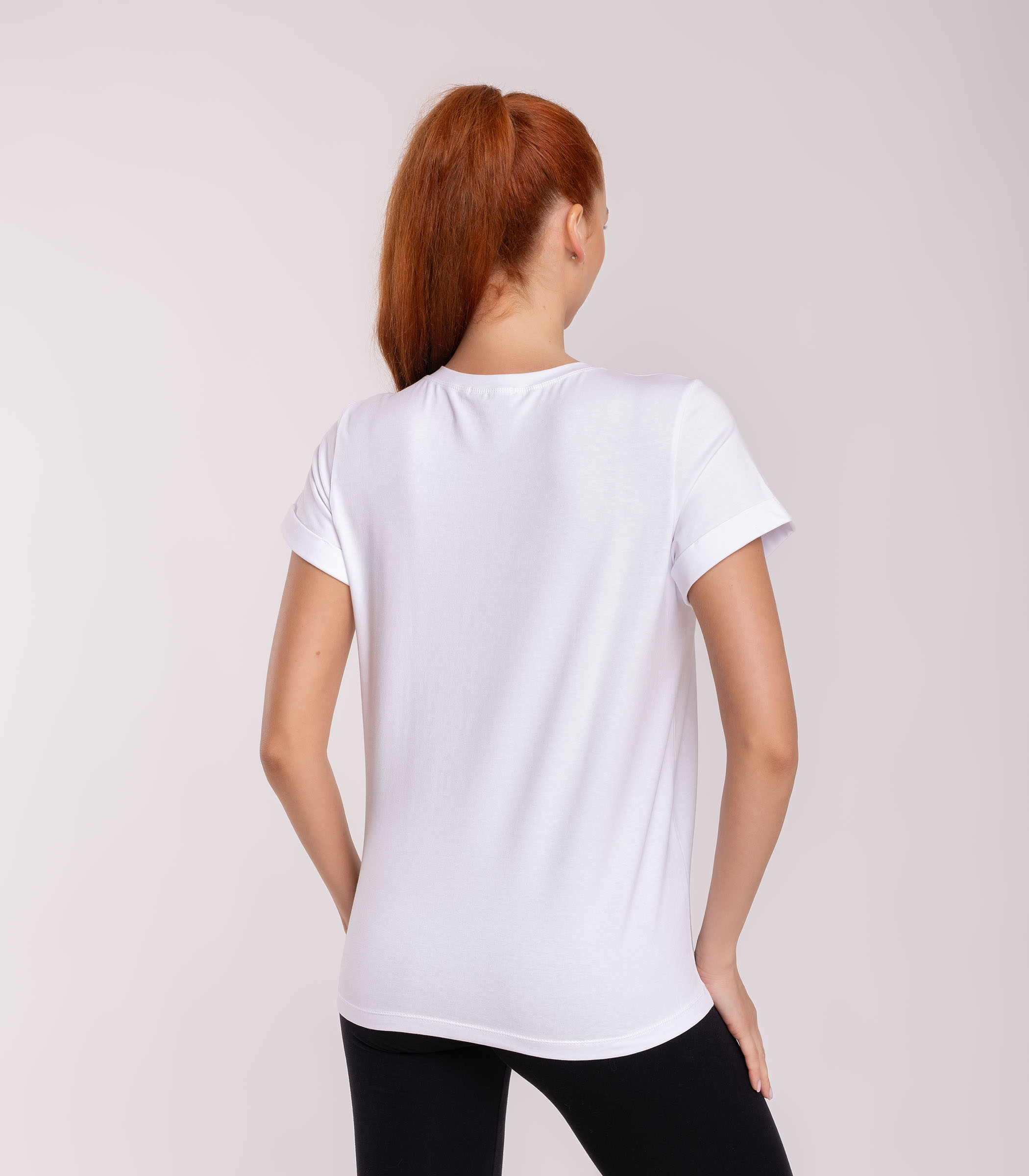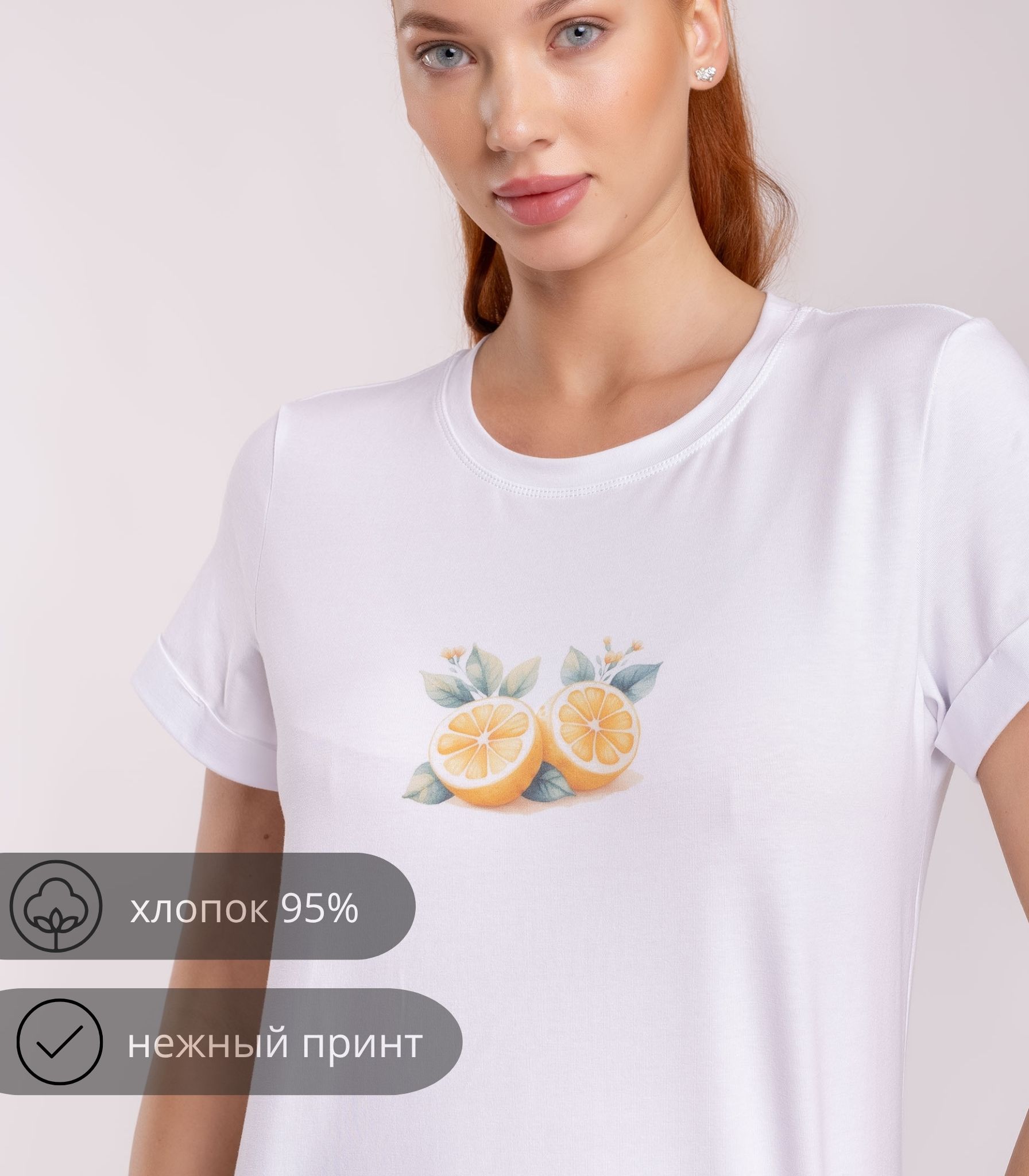 Базовая футболка с подворотами на рукавах выполнена из мягкого хлопкового полотна. Она приятна к телу и обеспечивает комфорт в носке. Модель свободного силуэта, укороченная хорошо сидит на разных типах фигуры и отлично сочетается с любой вещью в вашем гардеробе.
