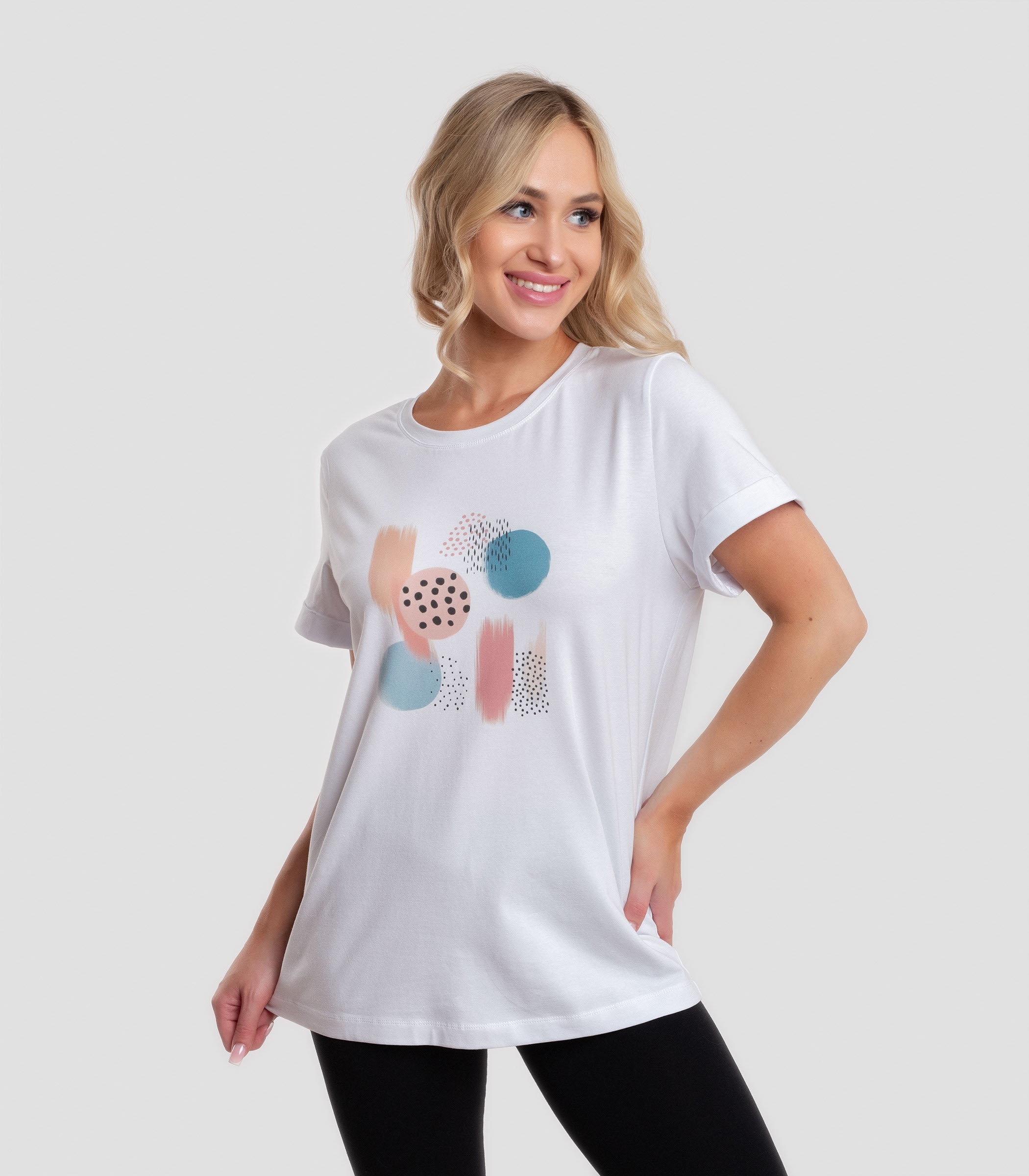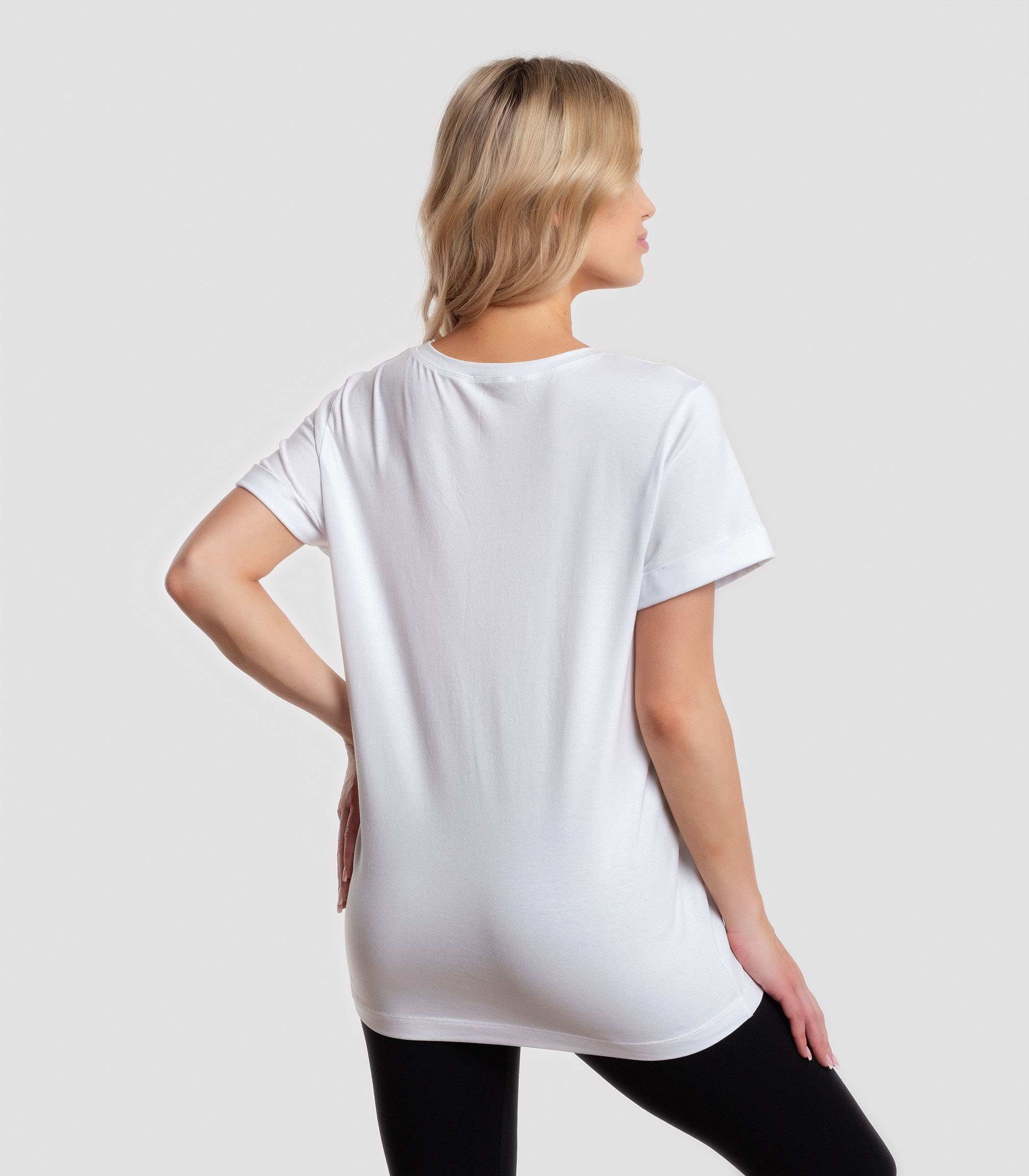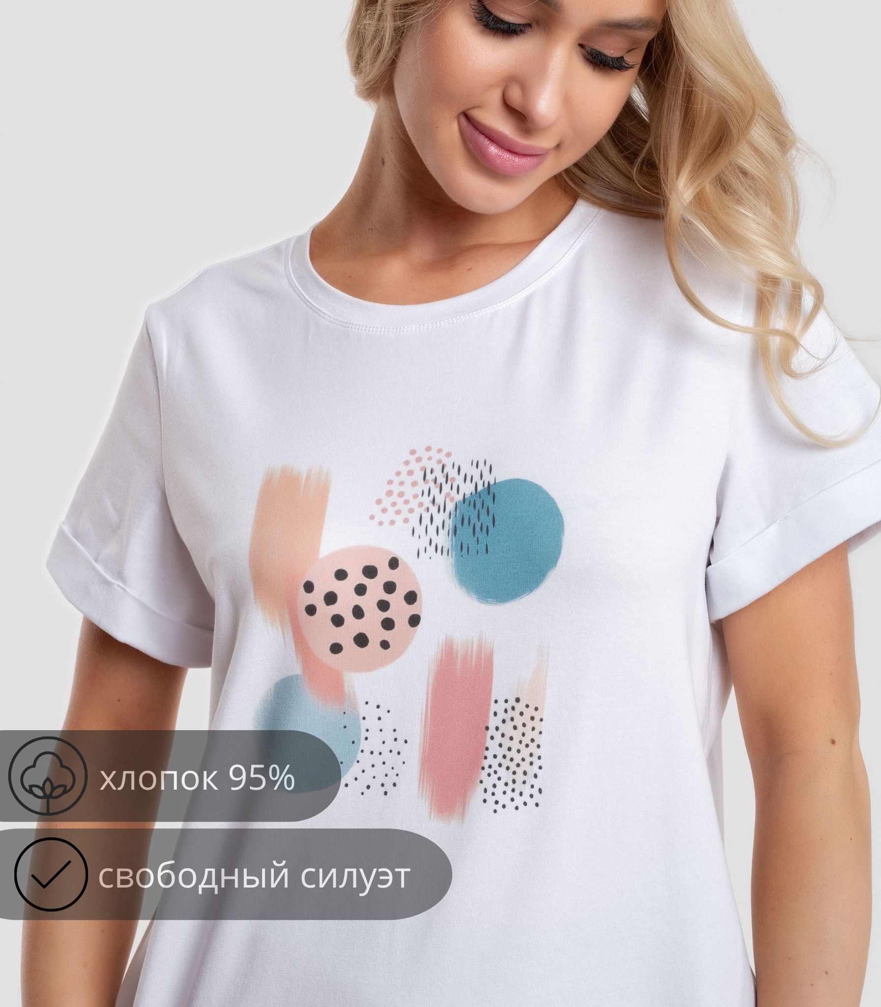 Базовая футболка с подворотами на рукавах выполнена из мягкого хлопкового полотна. Она приятна к телу и обеспечивает комфорт в носке. Модель свободного силуэта, укороченная хорошо сидит на разных типах фигуры и отлично сочетается с любой вещью в вашем гардеробе.;