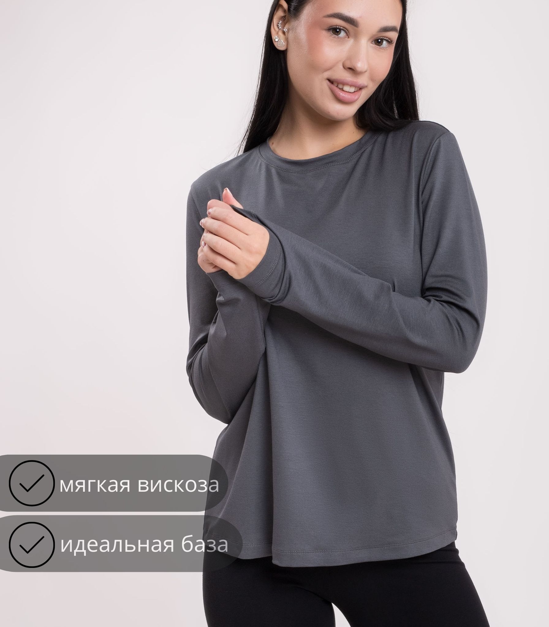 Базовый женский джемпер выполнен из мягкой вискозы. Модель свободного силуэта с круглым вырезом и длинным рукавом. Джемпер отлично подходит для составления повседневных образов.