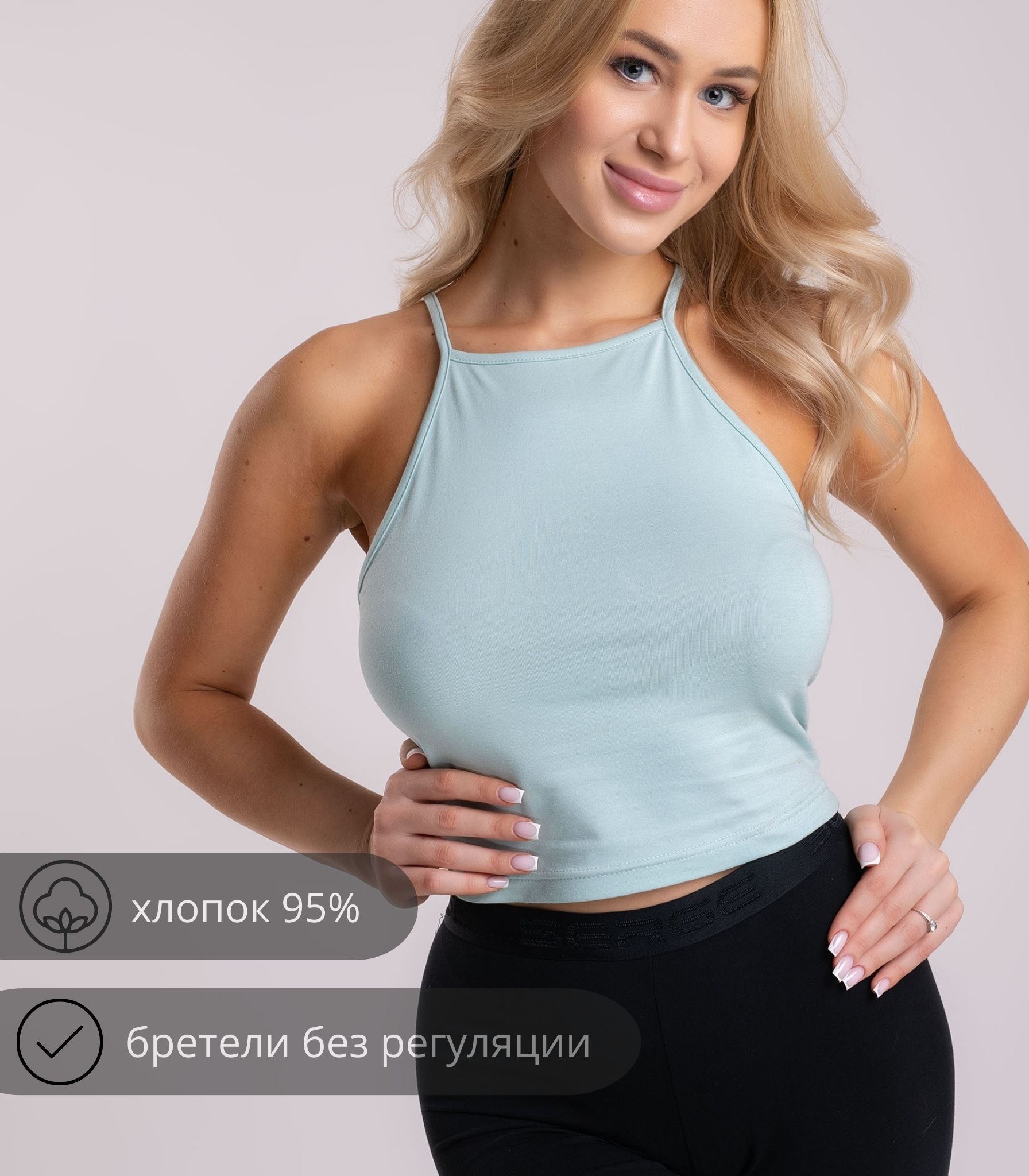 Базовый укороченный топ выполнен из высококачественного хлопка. Модель на тонких бретелях. Топ отлично подходит для повседневной носки и хорошо сочетается со многими элементами базового гардероба.;